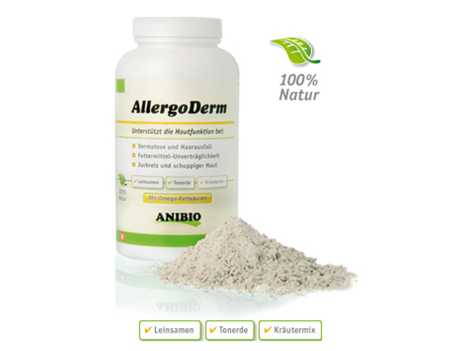 Hunde og katte kan ligesom mennesker være allergiske over for fødevareingredienser, som giver sig udslag i hud- og pelsproblemer. AllergoDerm aktiverer immunsystemet og kan afhjælpe bl.a. kost-induceret stofskiftesygdomme. Understøtter og heler immunforsvaret. Reducerer fødevarerelaterede allergier. Stabiliserer kroppens tarmflora og funktion.
