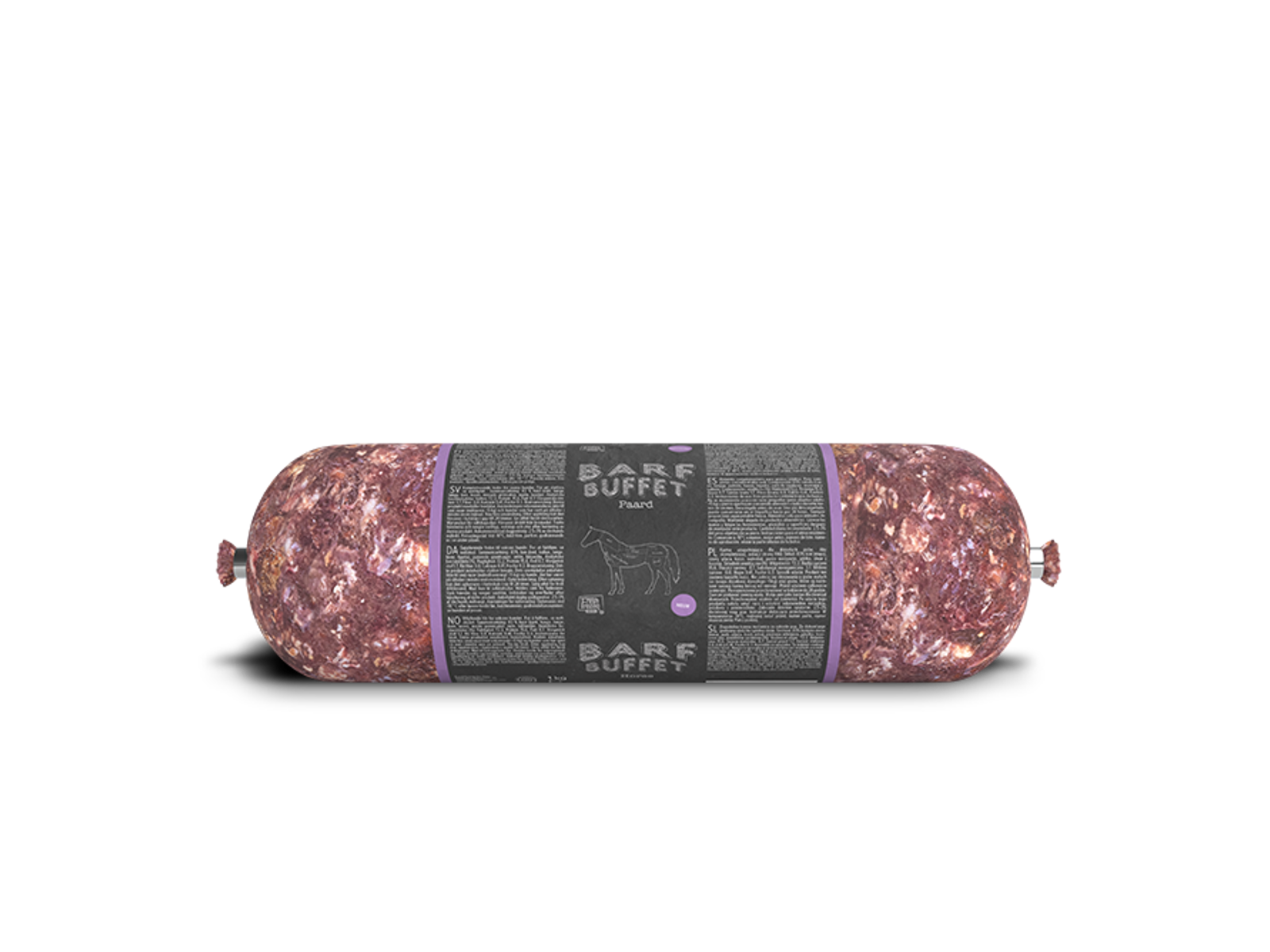 Sammensætning: Hestekød 28%, Pluks med tunge og lunge 40%,
