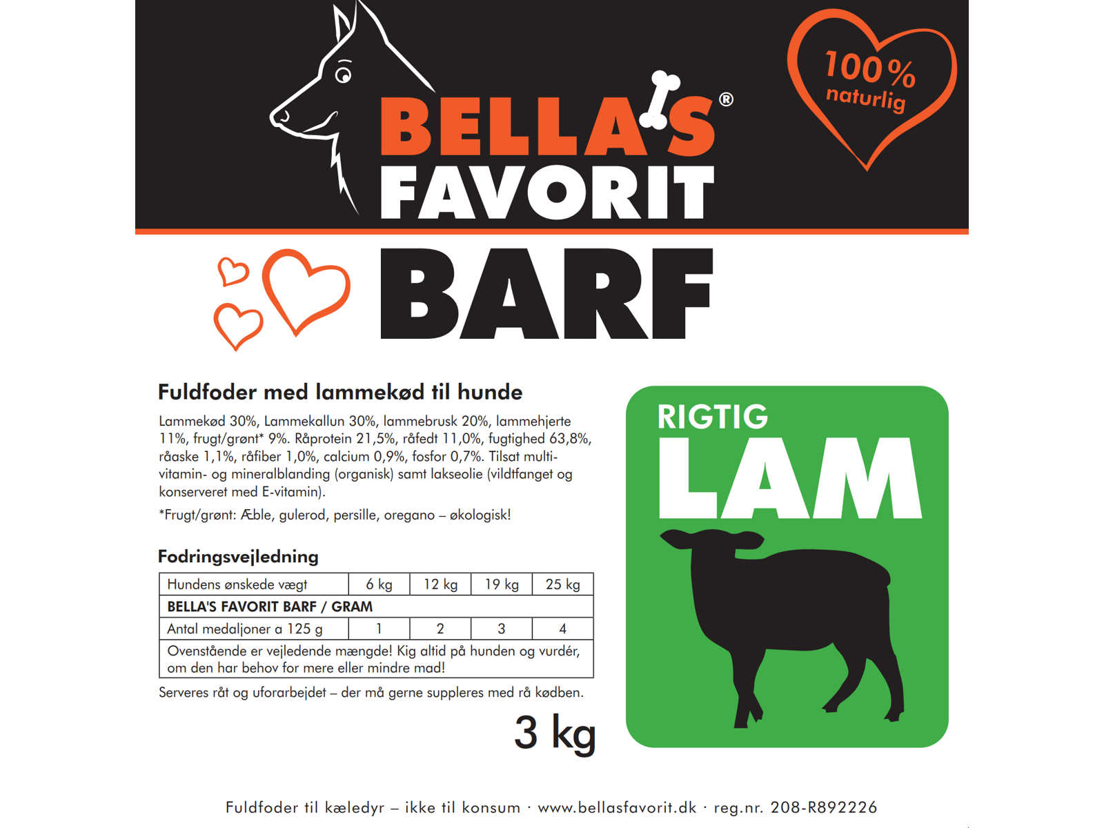 11%, frugt/grønt* 9%. Råprotein 21,5%, råfedt 11,0%, fugtighed 63,8%,