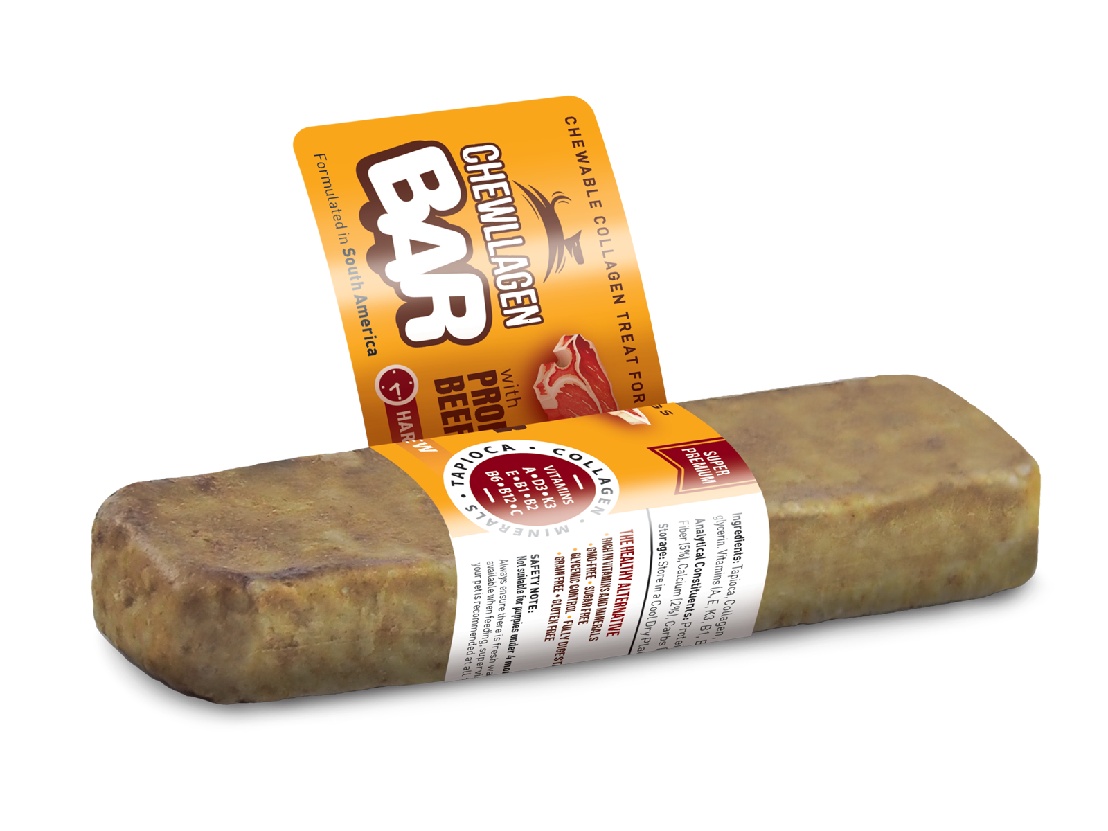 Chewllagen BAR indeholder oksekødskollagen, en naturlig kilde til kollagen, der bidrager til ledsundhed, hudresistens og elasticitet  .