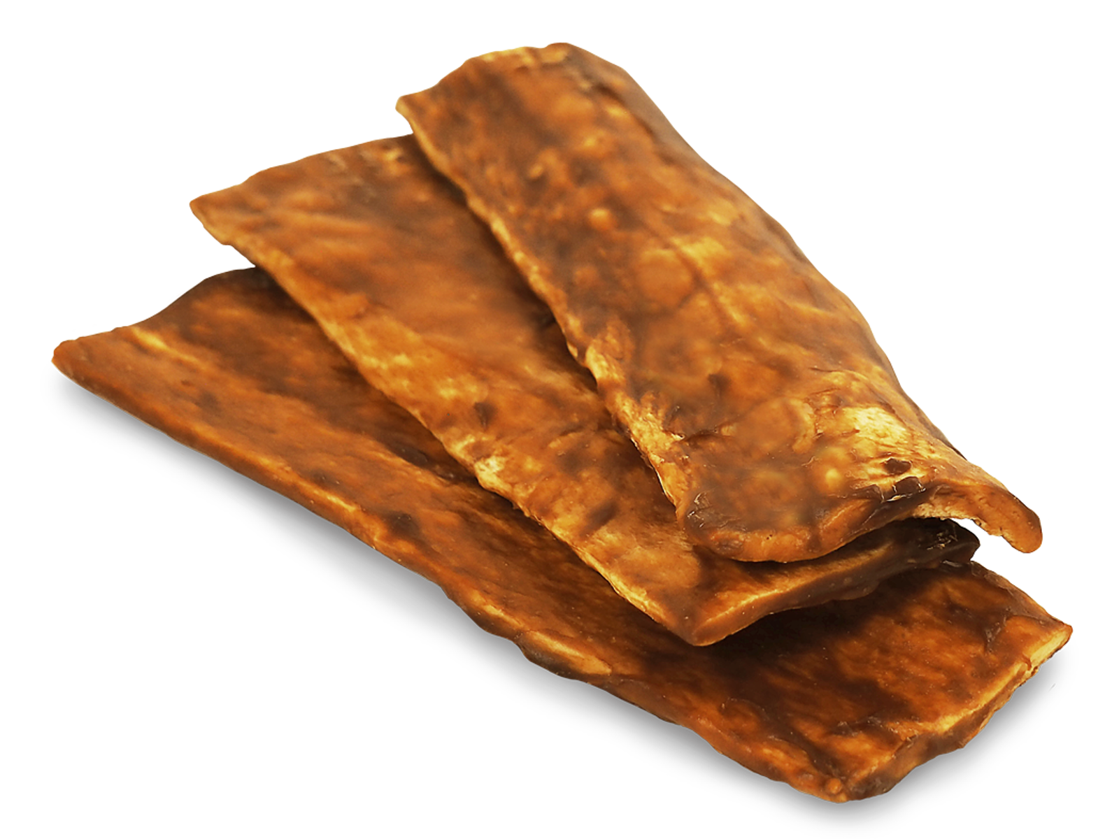 Kollagenet formes og bages, hvor det får sin brødlignende konsistens, inden det dyppes i rent oksekød.