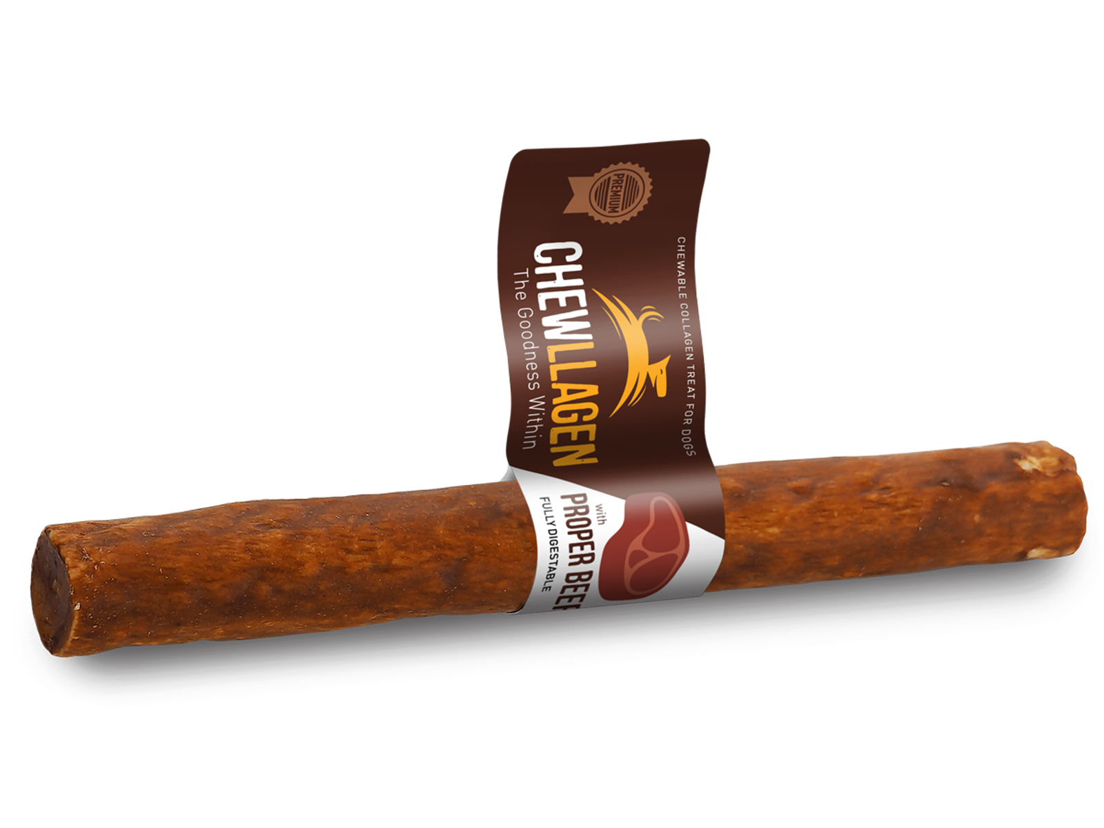 Chewllagen er en hundegodbid fremstillet af kollagen udvundet af huden fra sydamerikansk græsfodret kvæg.