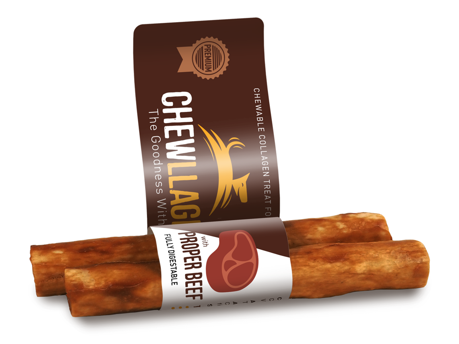 • Chewllagen er en hundegodbid fremstillet af kollagen udvundet af huden fra sydamerikansk græsfodret kvæg.