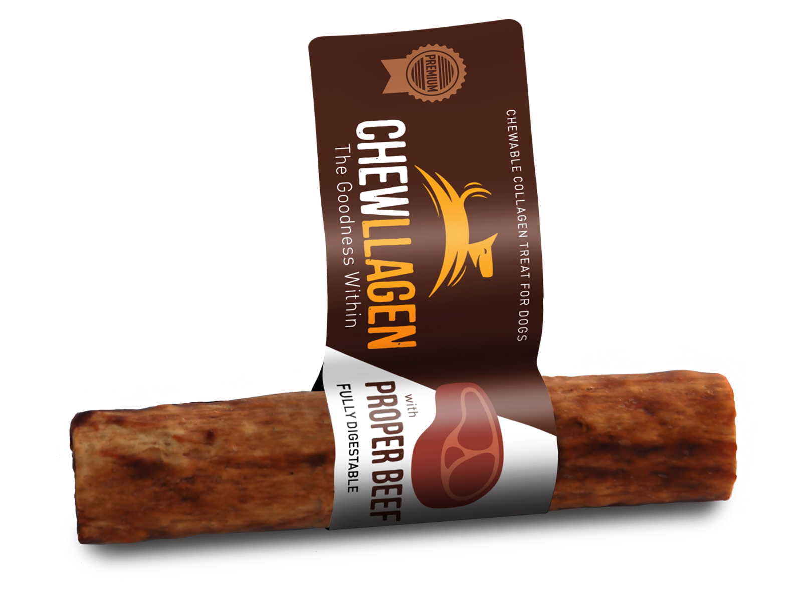 Chewllagen er en hundegodbid fremstillet af kollagen udvundet af huden fra sydamerikansk græsfodret kvæg.