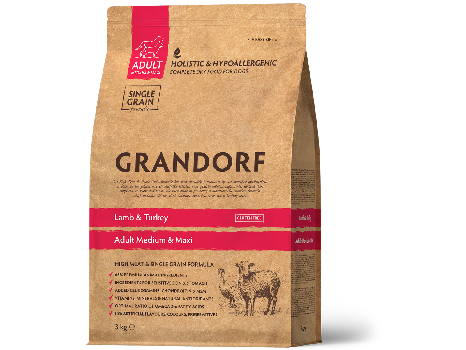 ADULT MEDIUM & MAXI Lamb & Turkey Komplet ernæring til alle hunderacer over 1 år. Ideel til hunde med sensitiv fordøjelse eller tilbøjelighed til allergi.