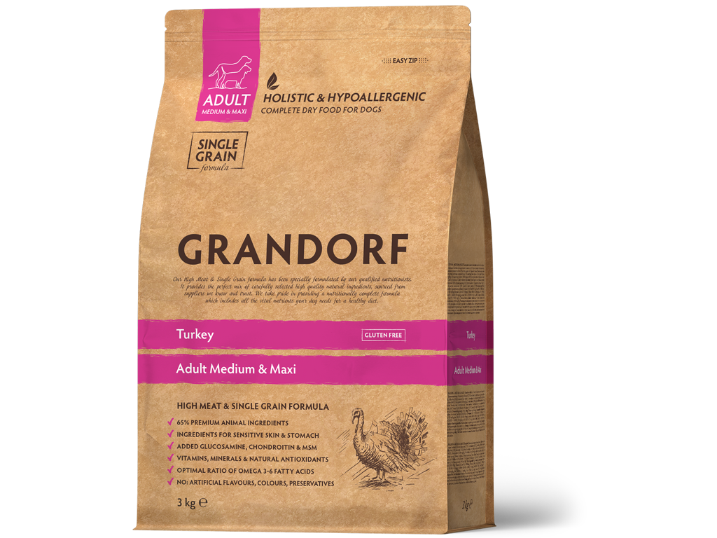 ADULT MEDIUM & MAXI Turkey Komplet ernæring til alle hunderacer over 1 år. Ideel til hunde med sensitiv fordøjelse eller tilbøjelighed til allergi.