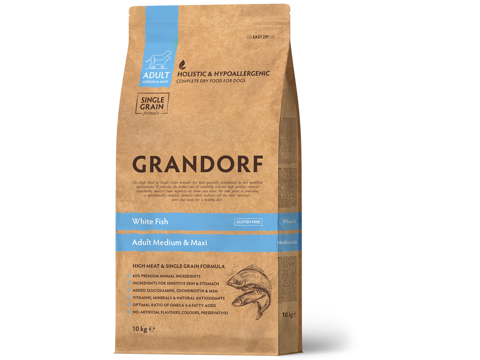 ADULT MEDIUM & MAXI White Fish Komplet ernæring til alle racerhunde over 1 år. Ideel til hunde, der kræver særlig hud- og pelspleje, samt hunde med sensitiv fordøjelse eller tilbøjelighed til allergi.