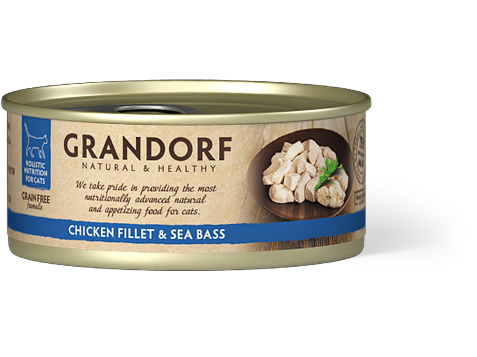 En helt naturlig vådfoder af udvalgte kyllingefilet og fiskefilet, skånsomt tilberedt i sin egen bouillon. Ideel til katte med en følsom fordøjelse. Kun kød og fisk og intet overflødigt – et glimrende supplement til tørfoder til en varieret kost.