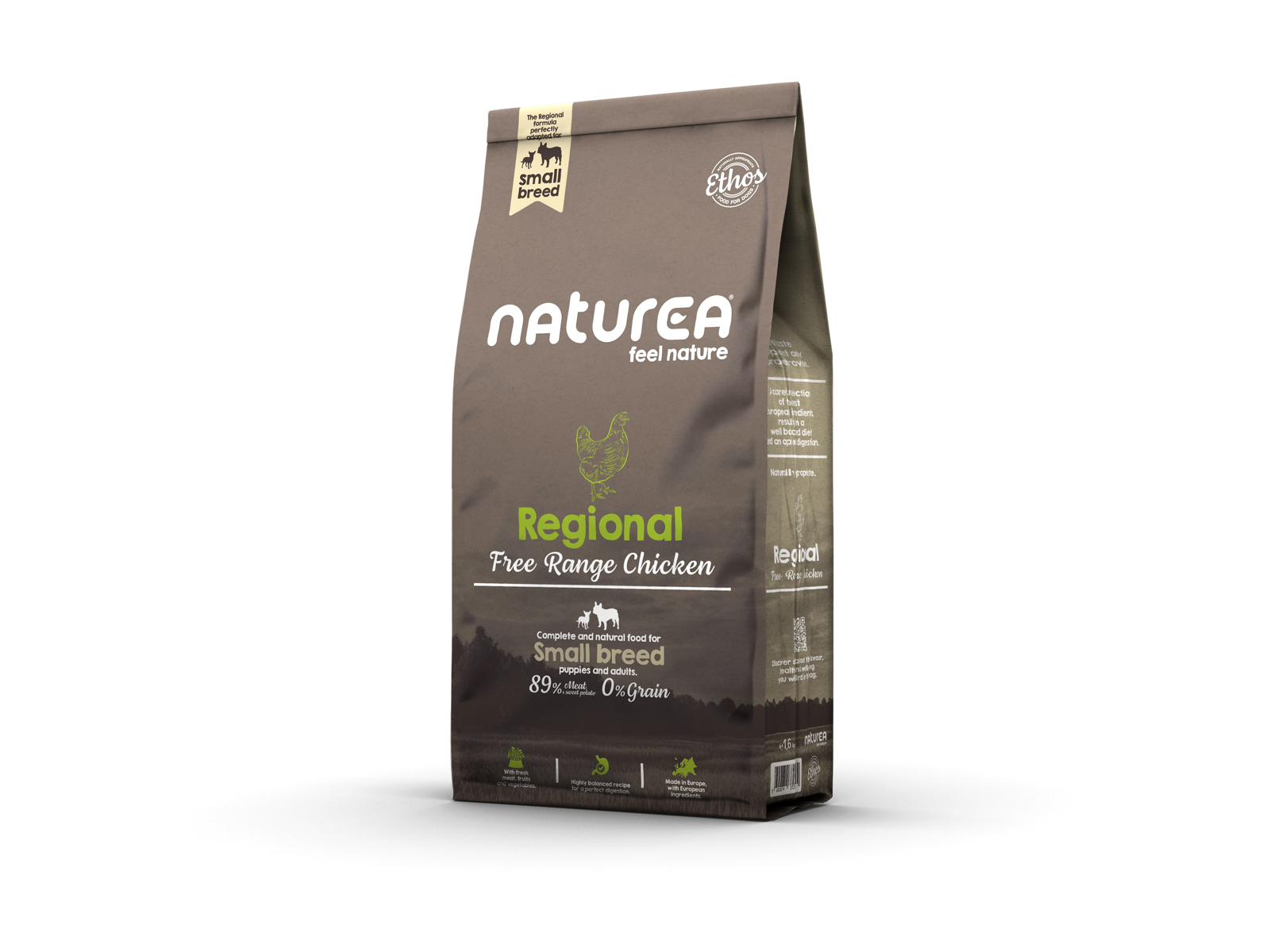 Naturea Regional lille race følger Naturally Appropriate-konceptet for at opfylde ernæringsbehovet for alle racer af små voksne hunde. Naturea Regional lille race, der er udviklet af dyrlæger og ernæringseksperter, er kornfri og indeholder en høj procentdel af animalske ingredienser, forstærket med sød kartoffel, lakseolie, æg, frugt, grøntsager og tang.