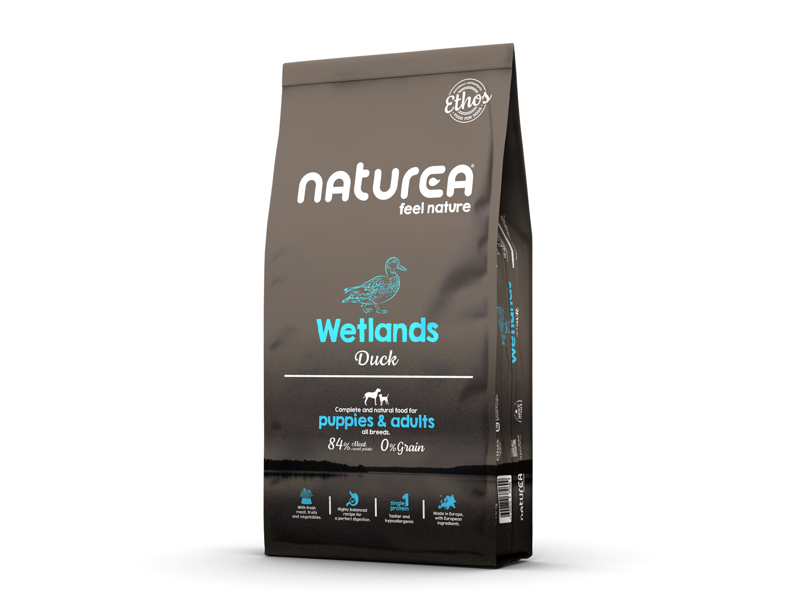 Med Naturea Wetlands Duck, kombinerer fordelene ved en enkelt proteinkilde, med den unikke smag af andekød. Dermed opnås det bedste fra begge verdener: sundhed og glæde i alle måltider. Ud over alle disse fordele, indeholder Naturea Wetlands Duck sød kartoffel, frugt, grøntsager og alger, samt høje niveauer af glucosamin, chondroitin og MSM til at støtte leddene og mobiliteten af din bedste ven .
