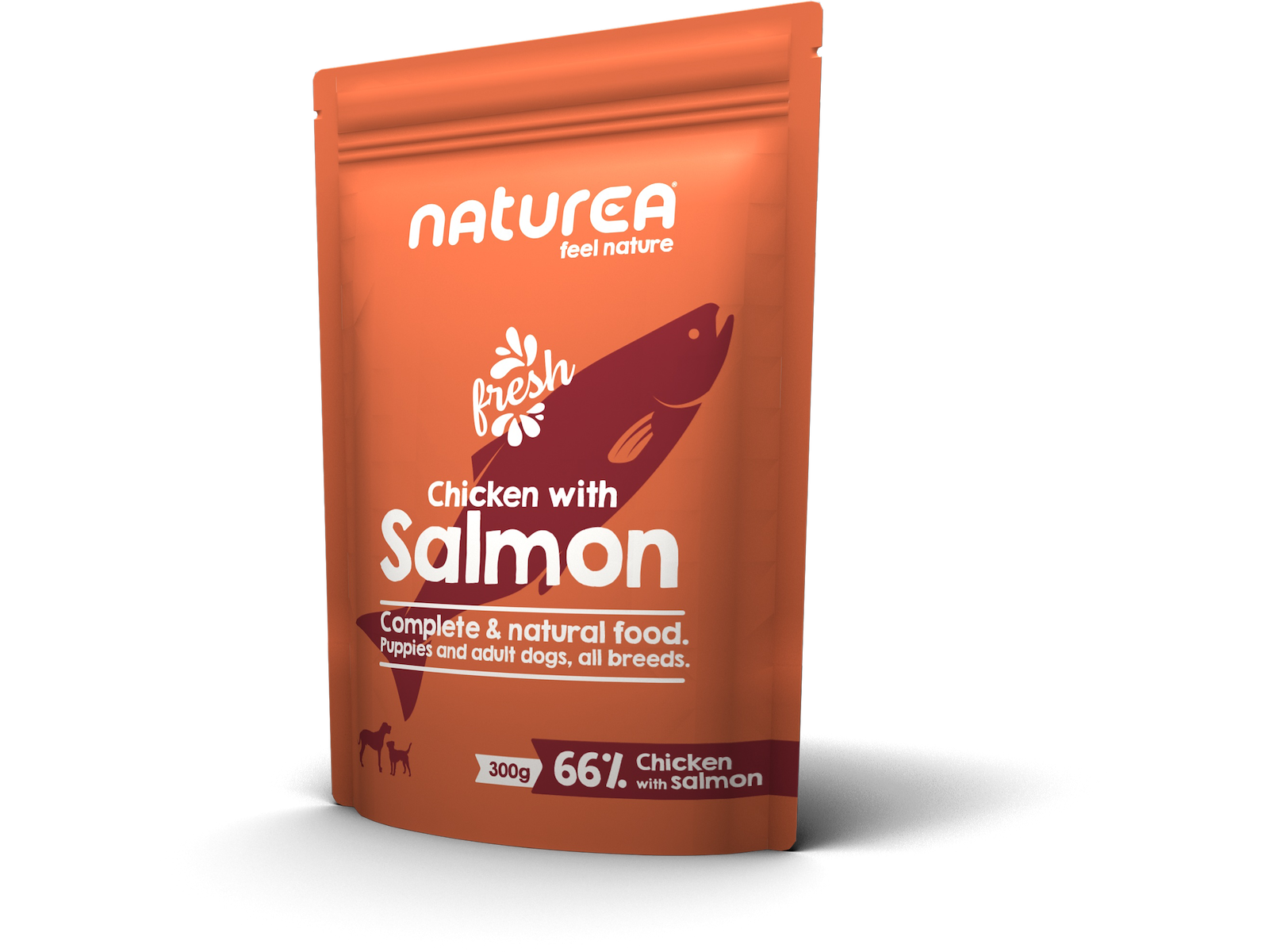 Vores friske vådfoder til hunde er primært produceret med frisk kylling og laks, to proteiner, som vores venner ville finde i naturen.  Med letfordøjelige ingredienser indeholder det også grøntsager med naturlige antioxidanter og olier for en optimal balance af fedtstoffer.  Produktet leveres i poser og en meget miljøvenlig emballage, der er i stand til at sikre alle smagsoplevelser fra første til sidste bid.