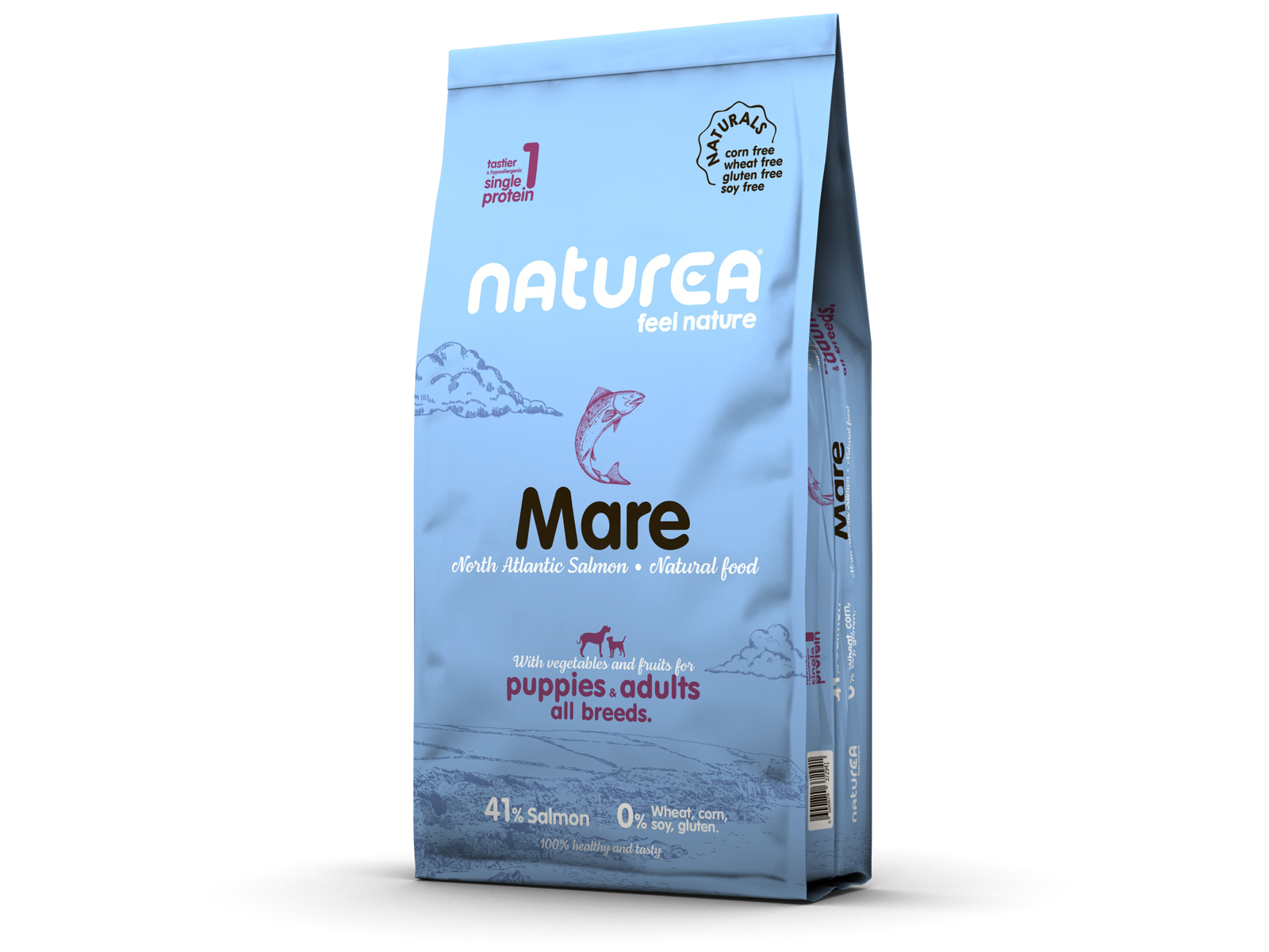 • http://www.natureapetfoods.com/da/categories/naturals-dry-food Naturea Mare North Atlantic Salmon – alle størrelser og racer - er produceret med hensyntagen til din hunds ernæringsmæssige behov, med animalsk protein, som udgør den største andel . Fre for hormoner, majs, hvede, soja og gluten.