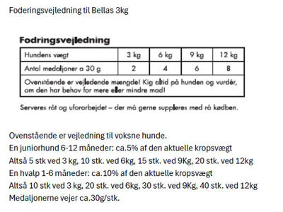 Perfekt til små hunde og katte i mundrette 30g medaljoner. Har din bedste ven en skavank og skal have lidt extra tilskud, glider det nemt ned med måltidet. Til de lidt større hunde, har vi Bella's Favorit Barf i 500g pakker, lige til at knække på midten.