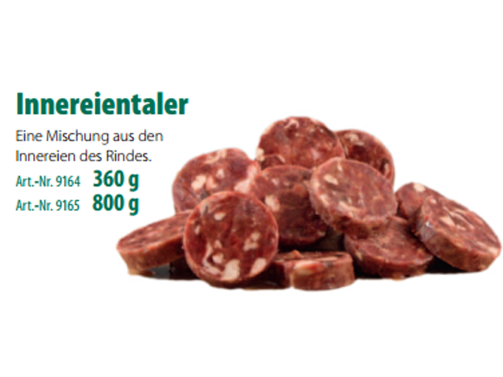 Sammensætning : Oksehjerte 40%, okselever 20%, oksenyrer 20%, oksemilt 20%