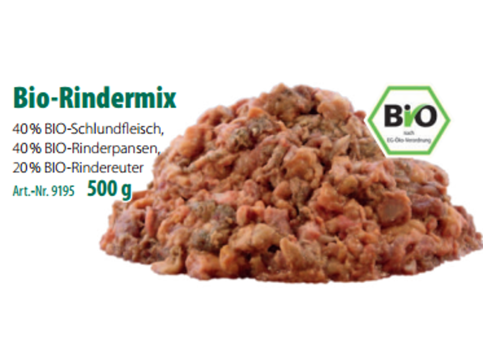 Sammensætning : Økologisk oksekallun 40%, økologisk oksekæbekød 35%, økologisk okseyver 25%