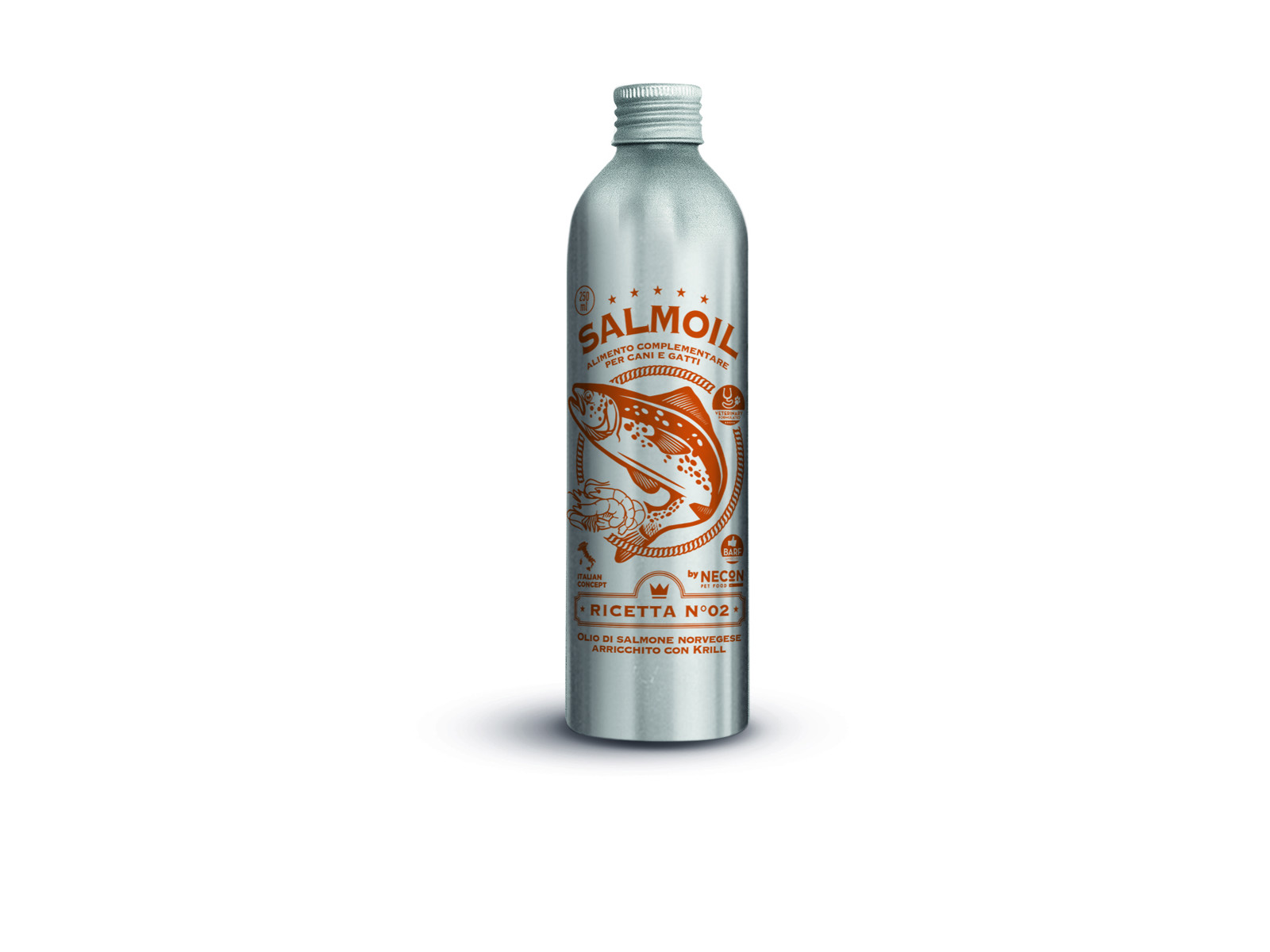 • Sammensætning: Olier og fedtstoffer (lakseolie 87%), bløddyr og krebsdyr (krill 5%), Fructo-oligosaccharider 1%, gærprodukter 0,8%, koncentrerede polyphenoler fra hydrolyseret lignocellulose 0,2%, krydderiblanding (rosmarin, gurkemeje) nelliker) 270 mg/kg.